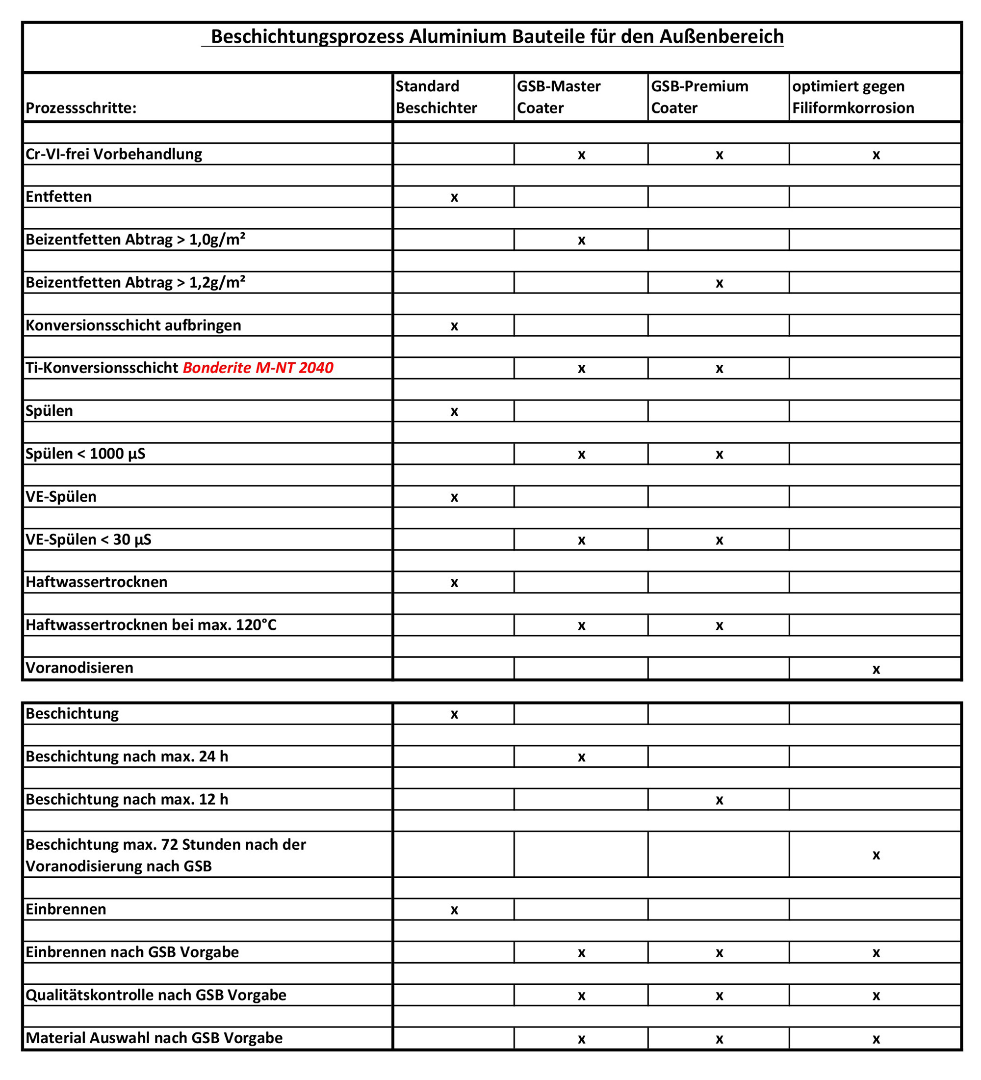 Die Arbeitsschritte der Vorbehandlung zur Metallveredelung wie Anschleifen, Entfetten, Beizen, Spülen, VE-Spülen, Passivieren und Trocknen werden bei Colour-line nach den Richtlinien der GSB durchgeführt.